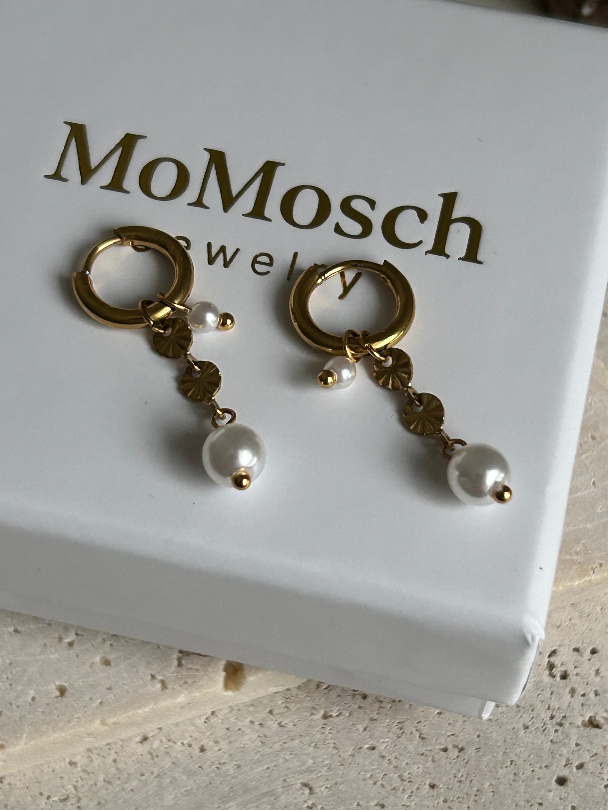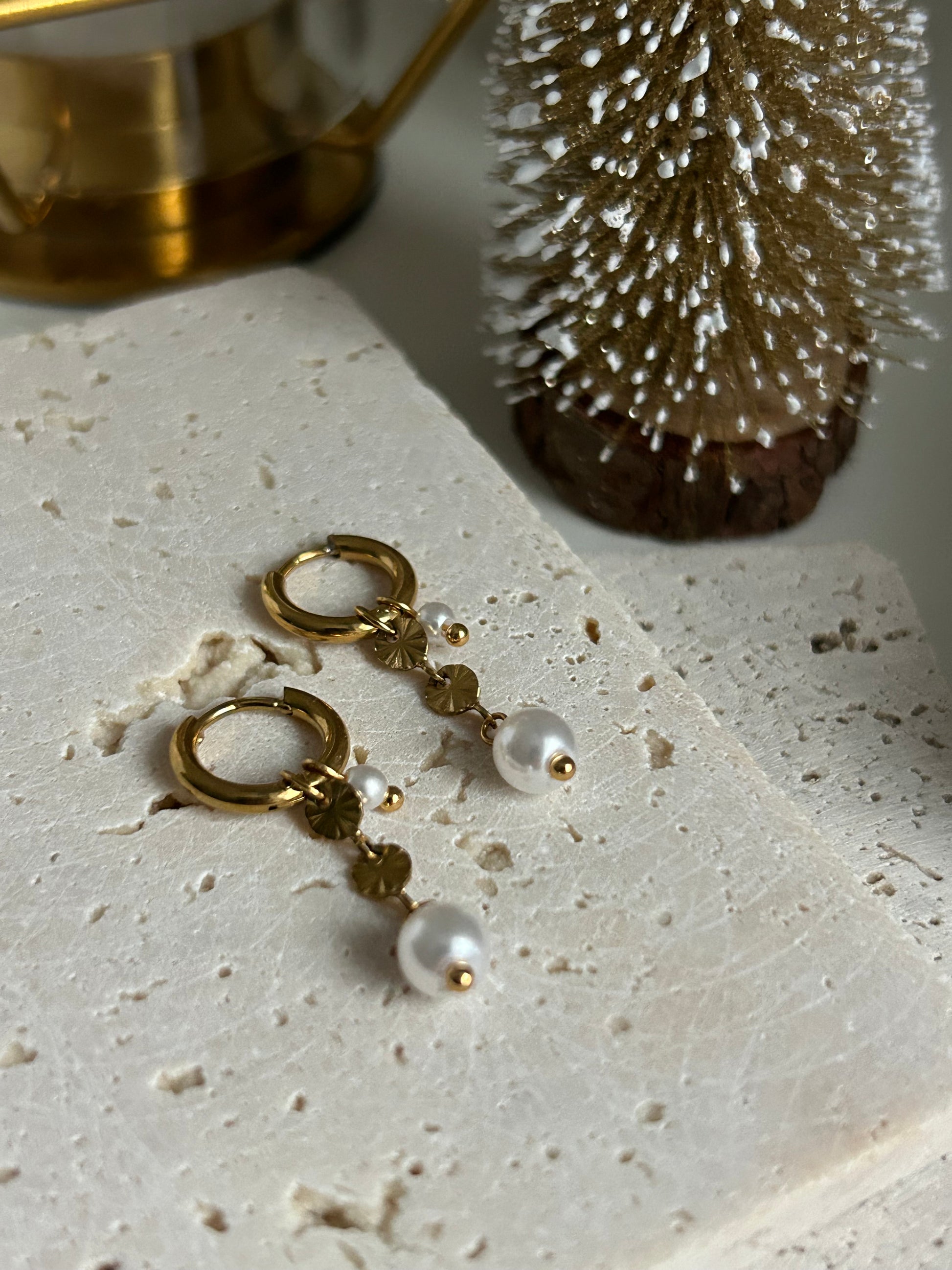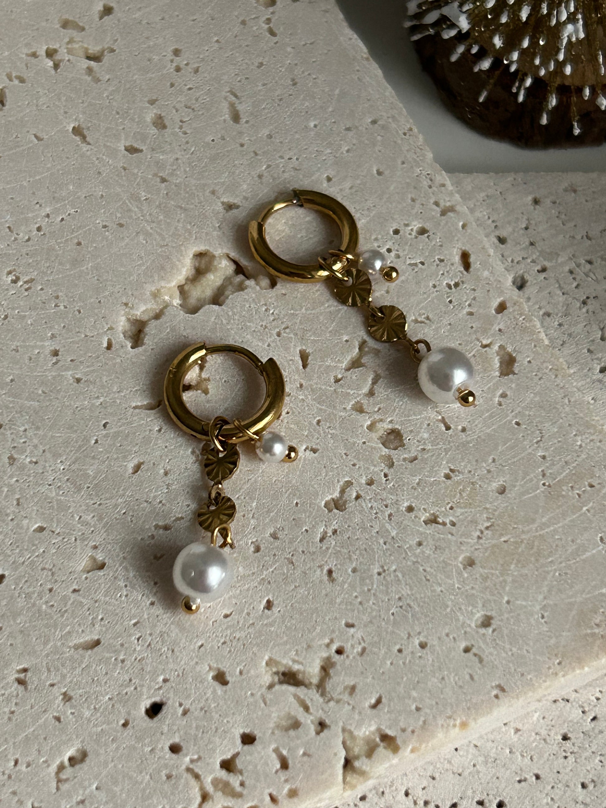 Elegante 18K Gold Creolen mit Perlenanhänger