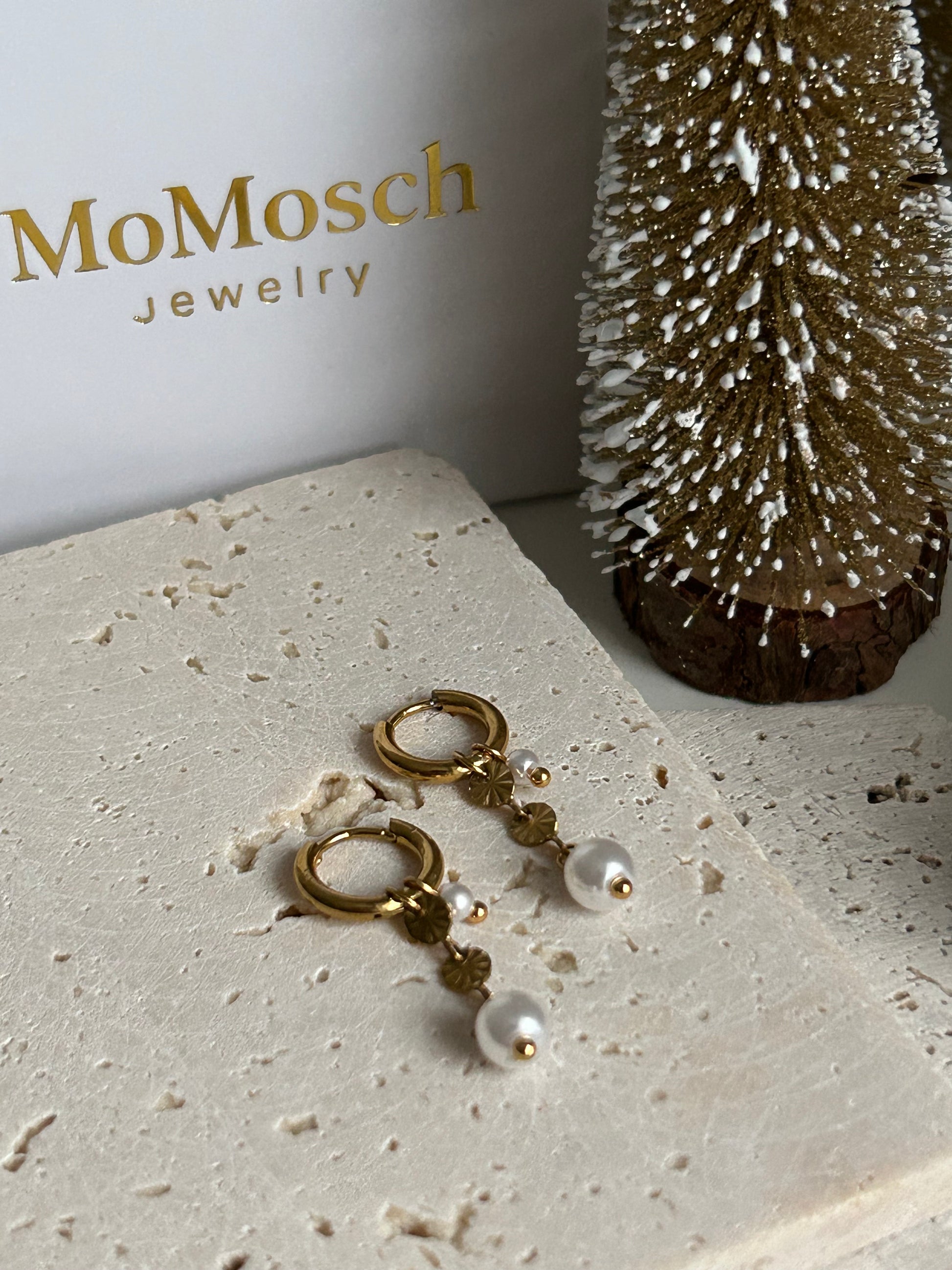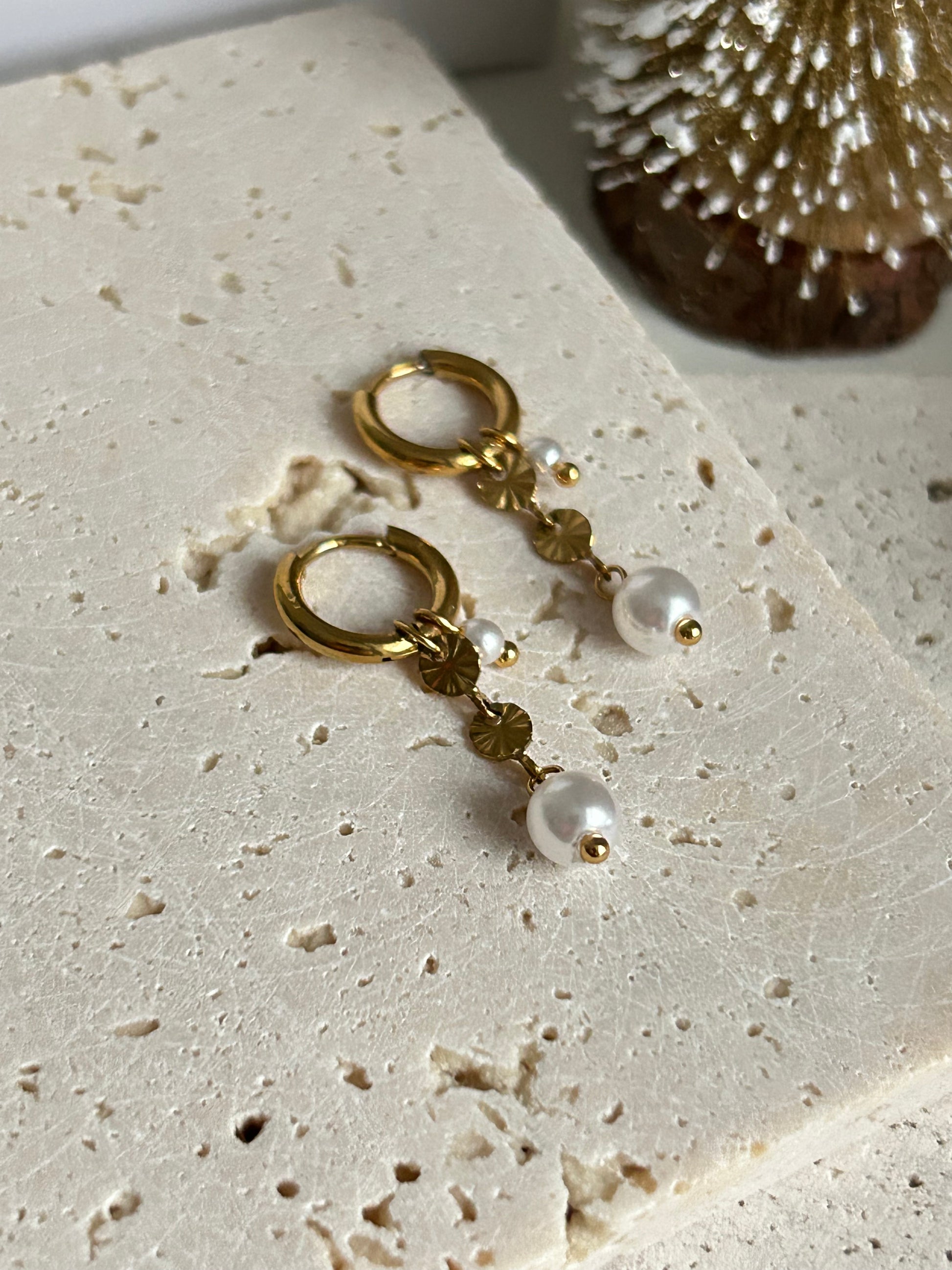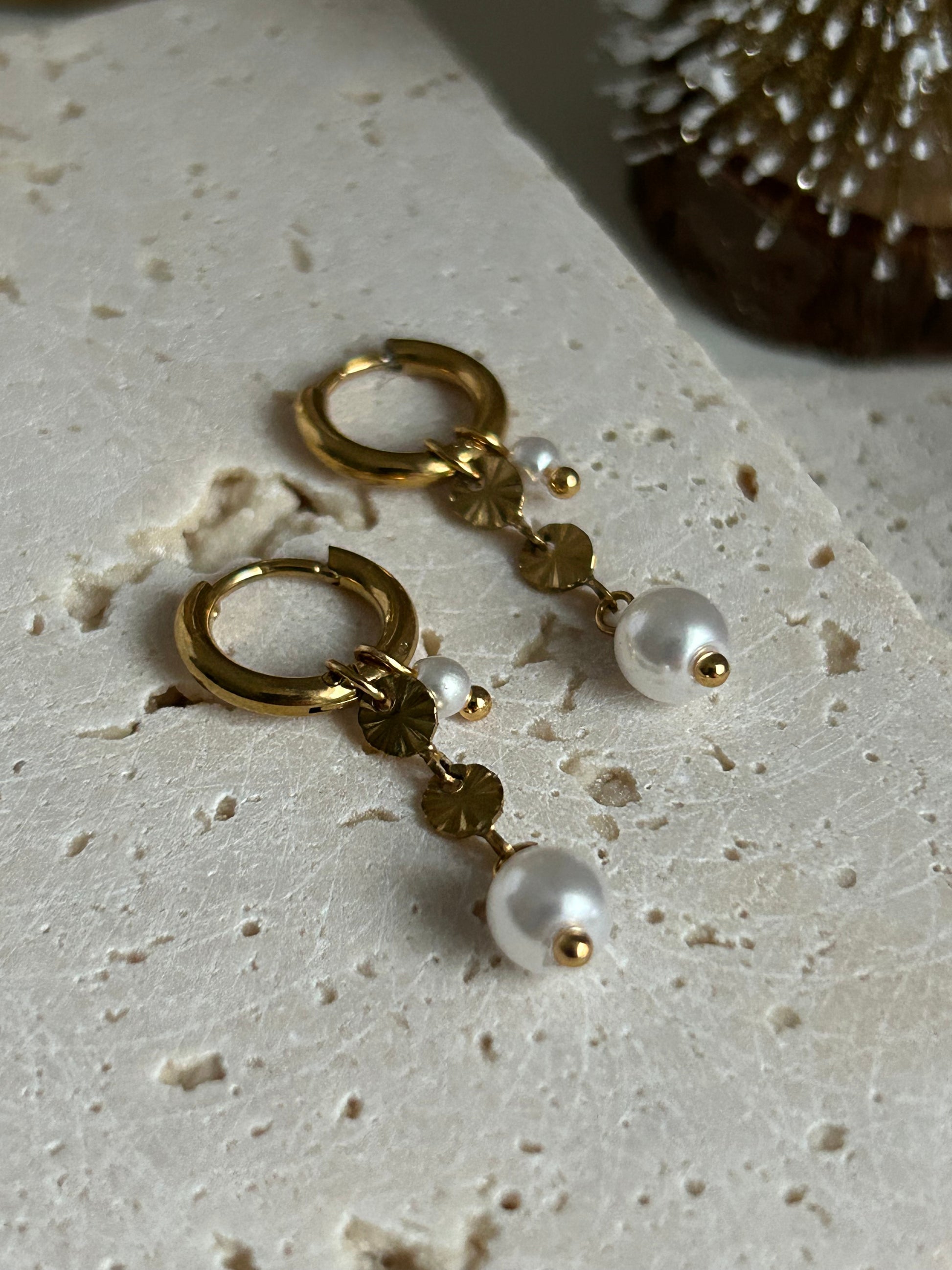 Elegante 18K Gold Creolen mit Perlenanhänger