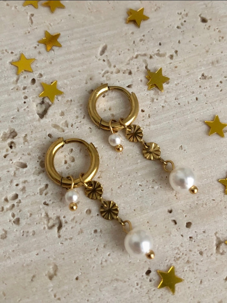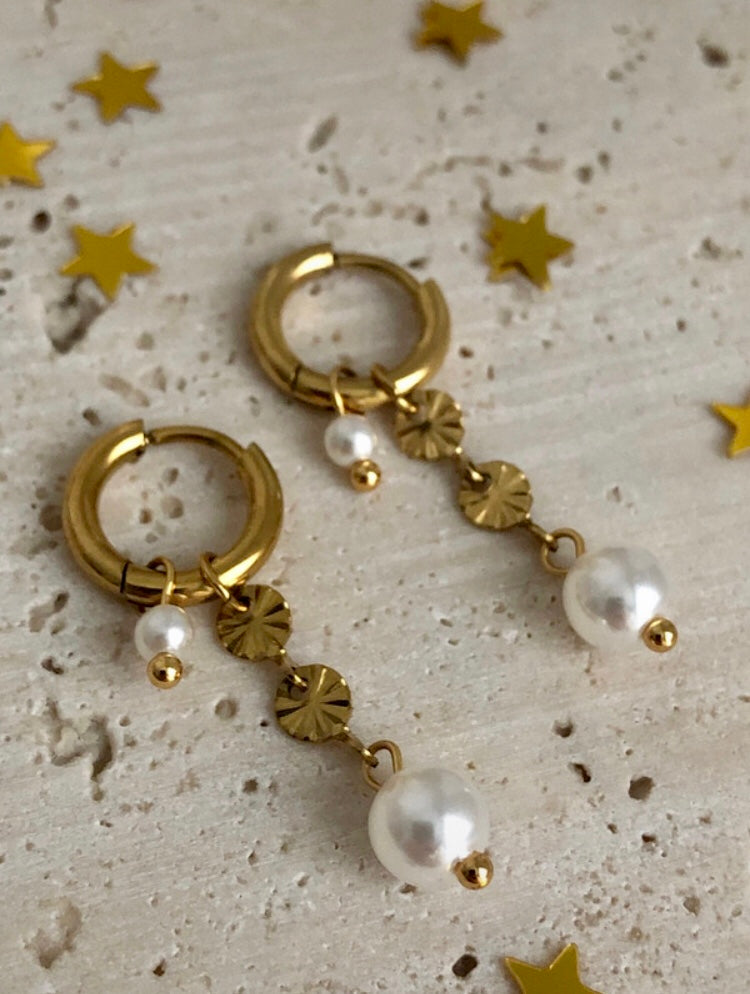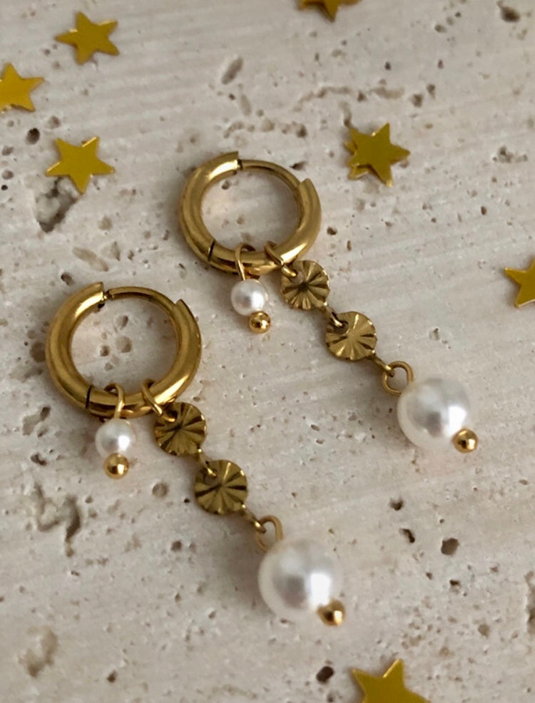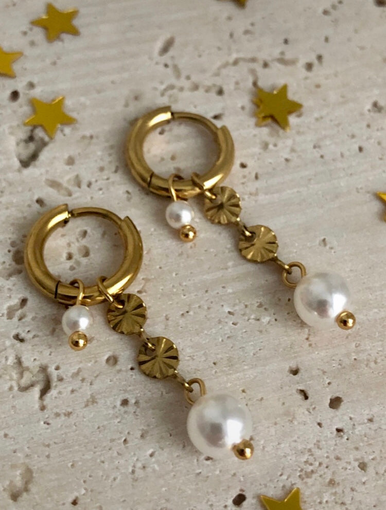 Elegante 18K Gold Creolen mit Perlenanhänger