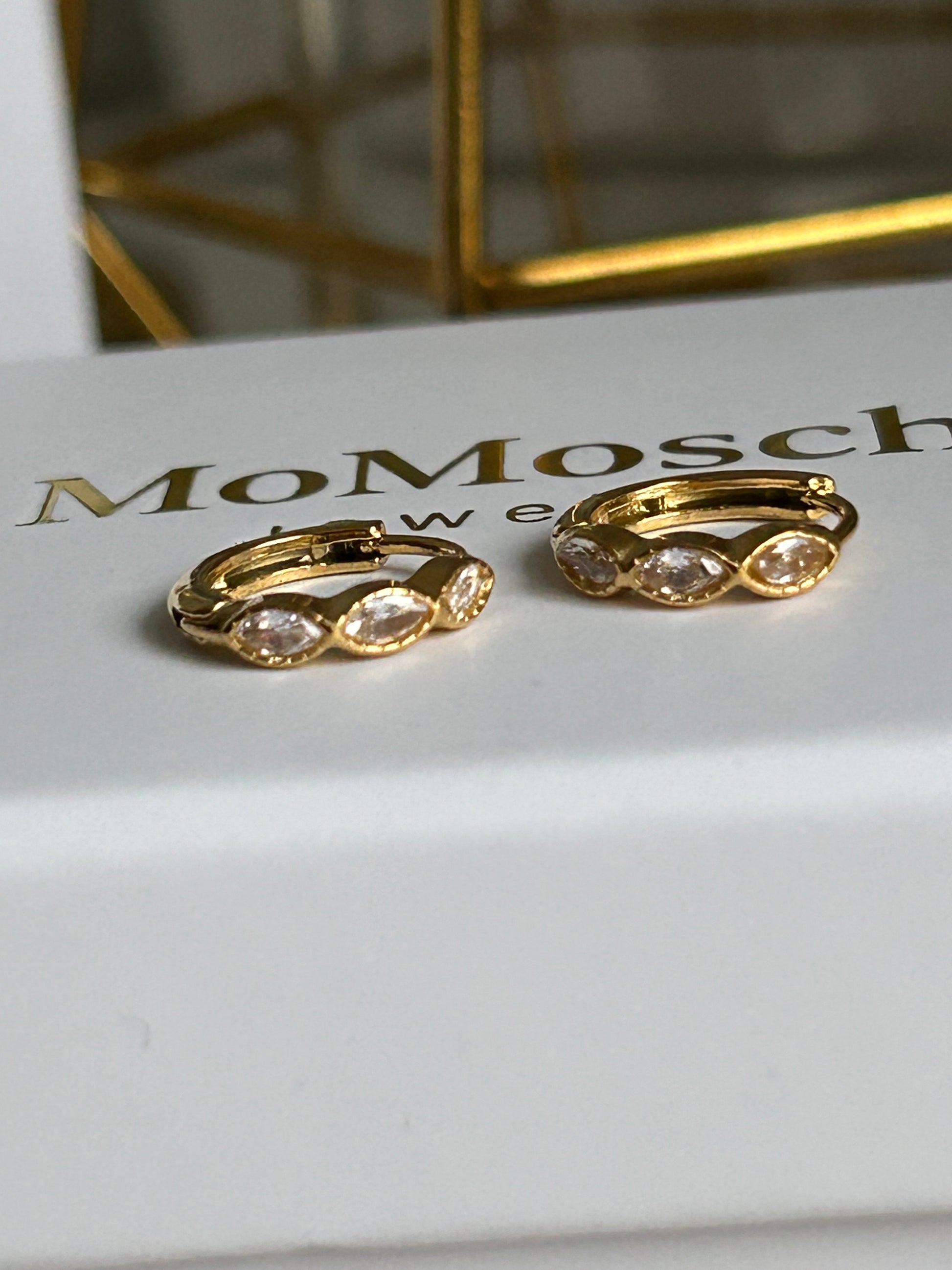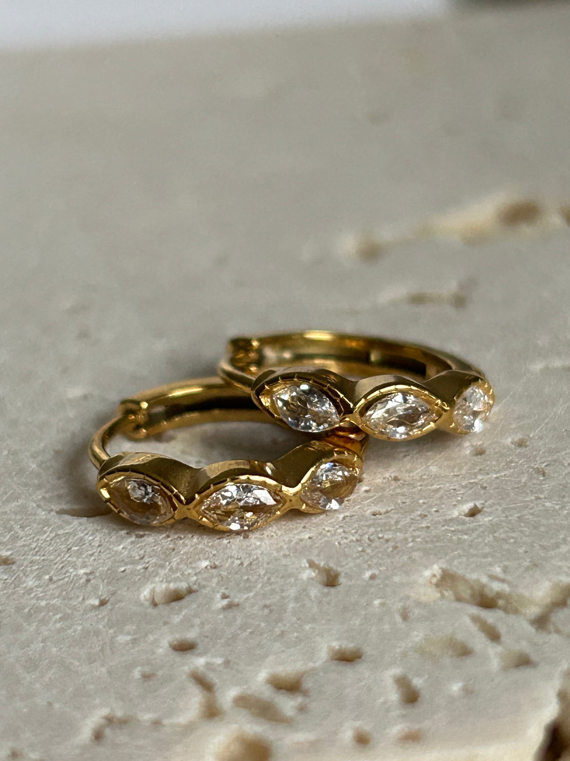 18K vergoldete Creolen mit klaren Zirkonia-Steinen – schlicht, edel und funkelnd.