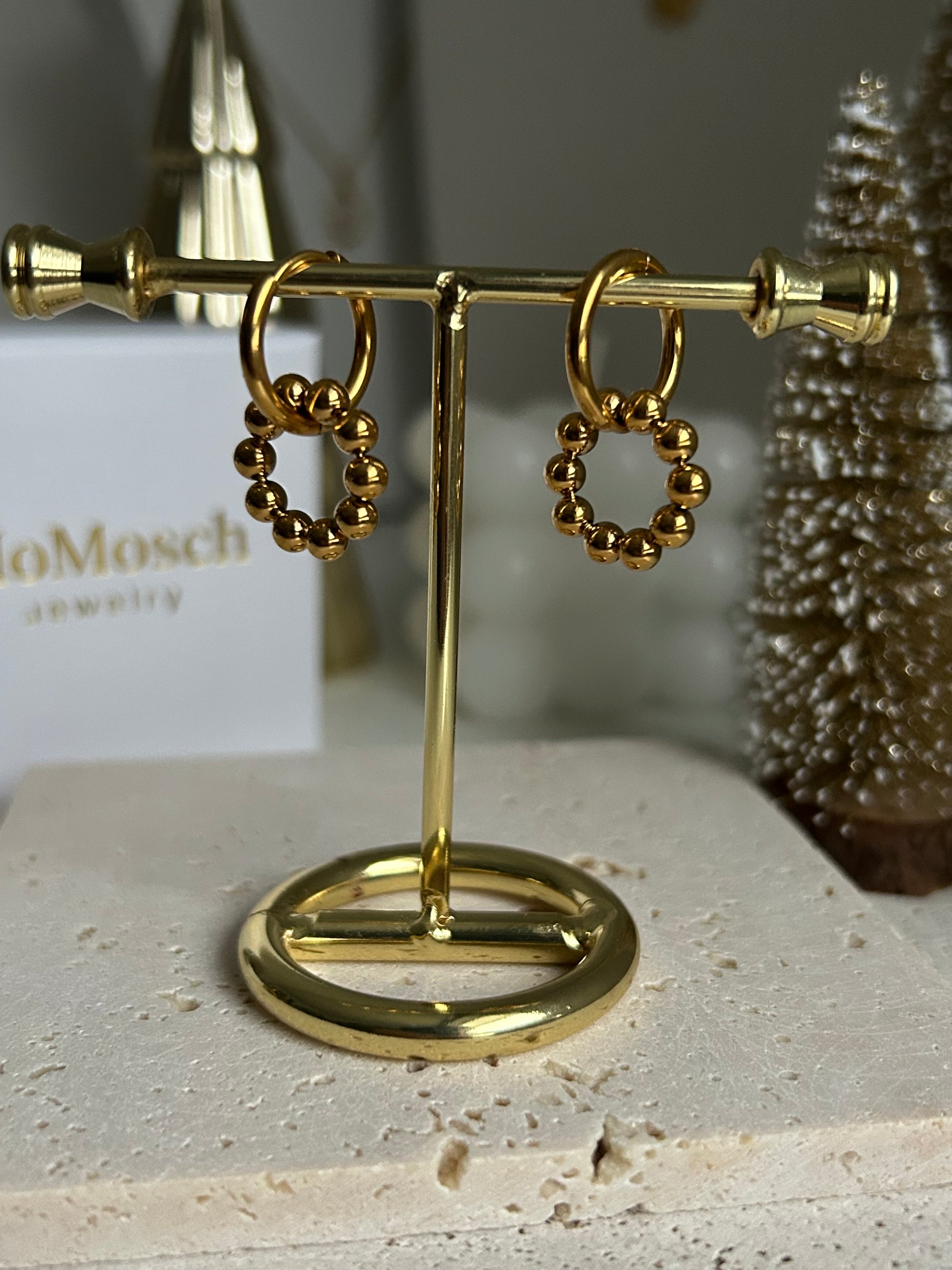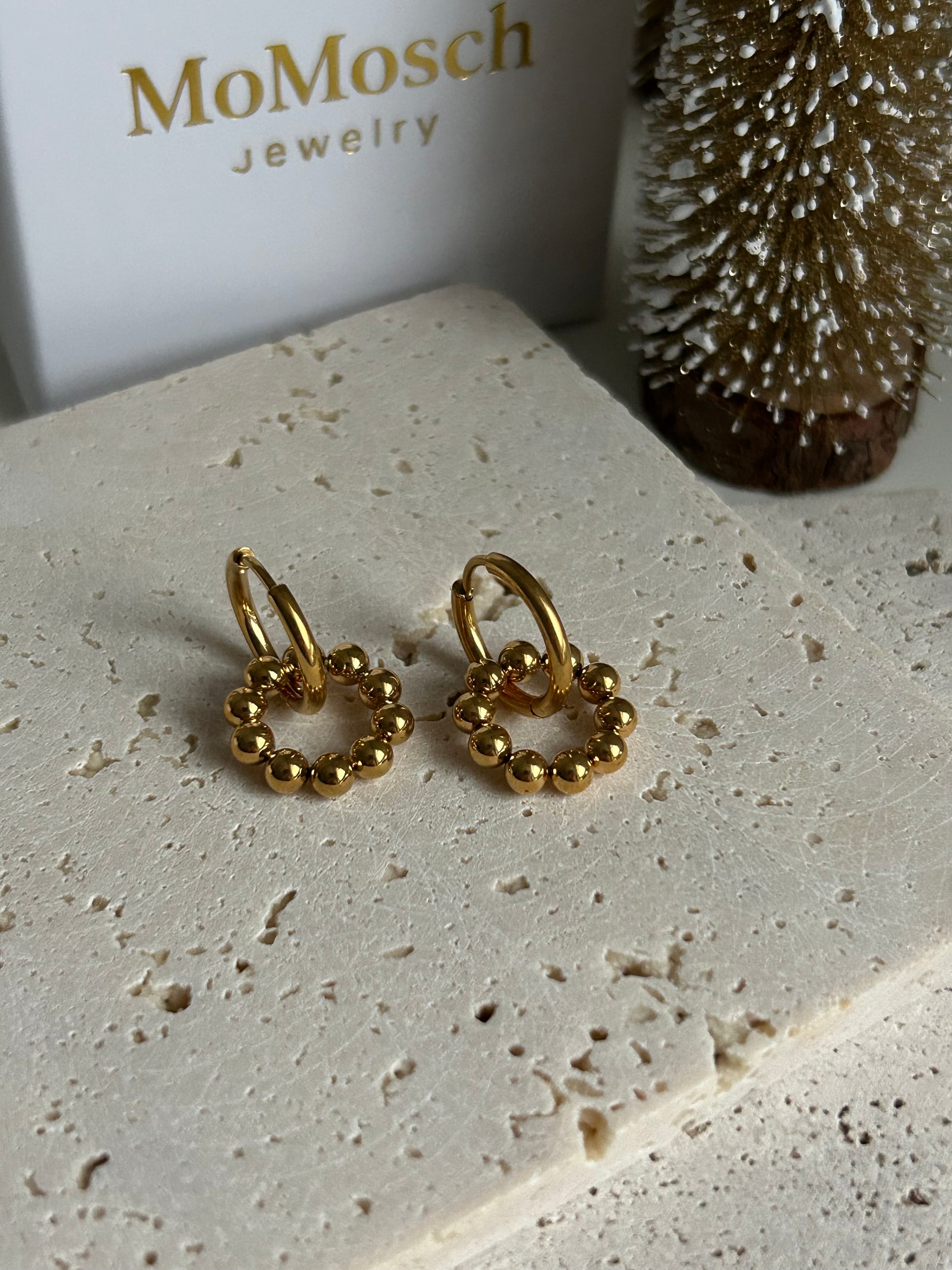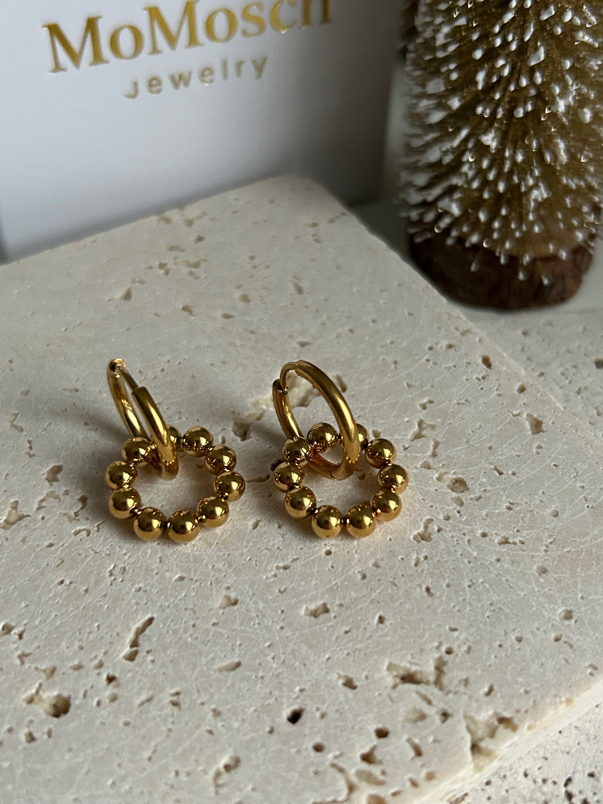 Moderne goldene Creolen mit runden Kugeldetails – schlicht, edel und perfekt für jeden Look.