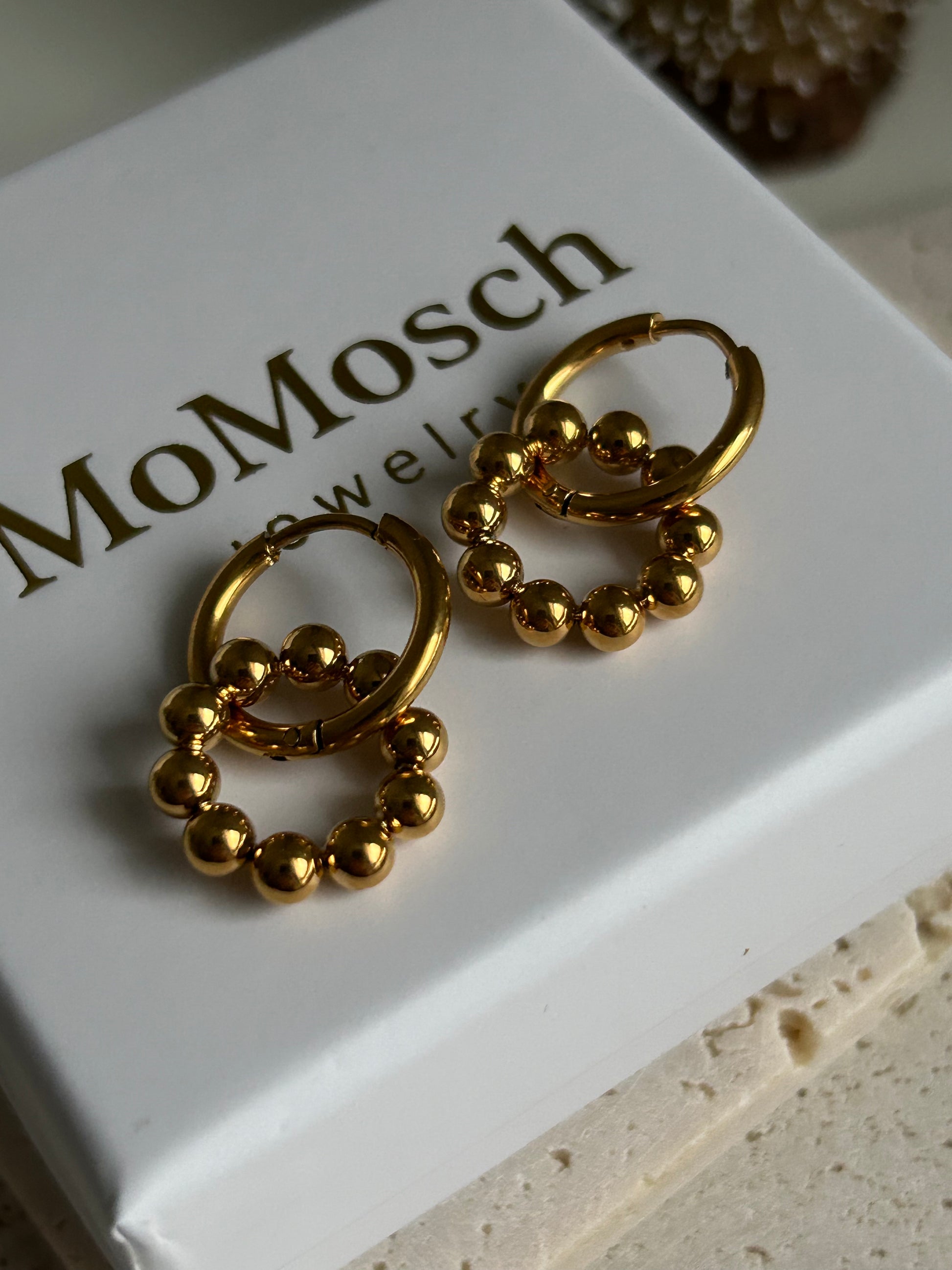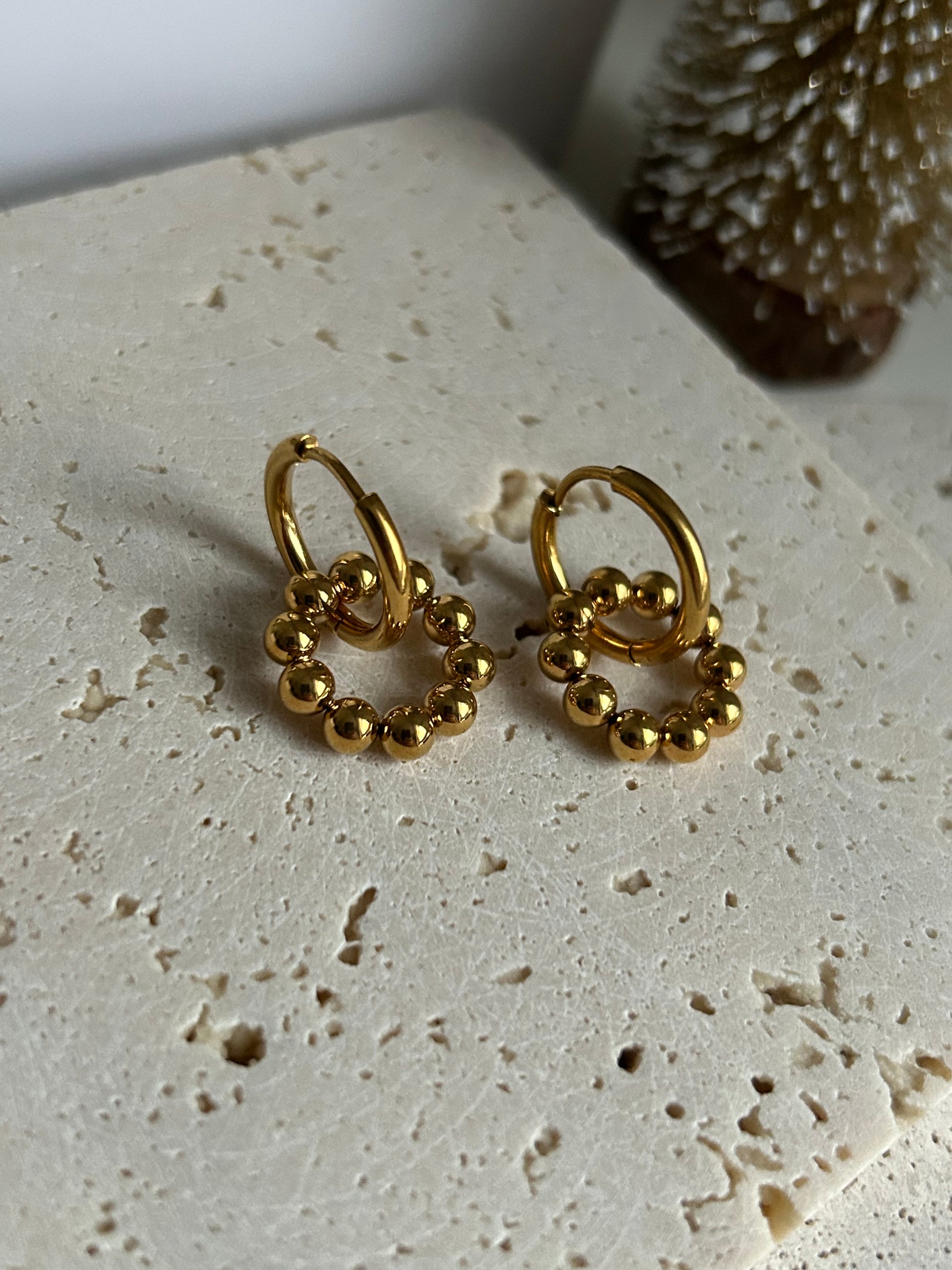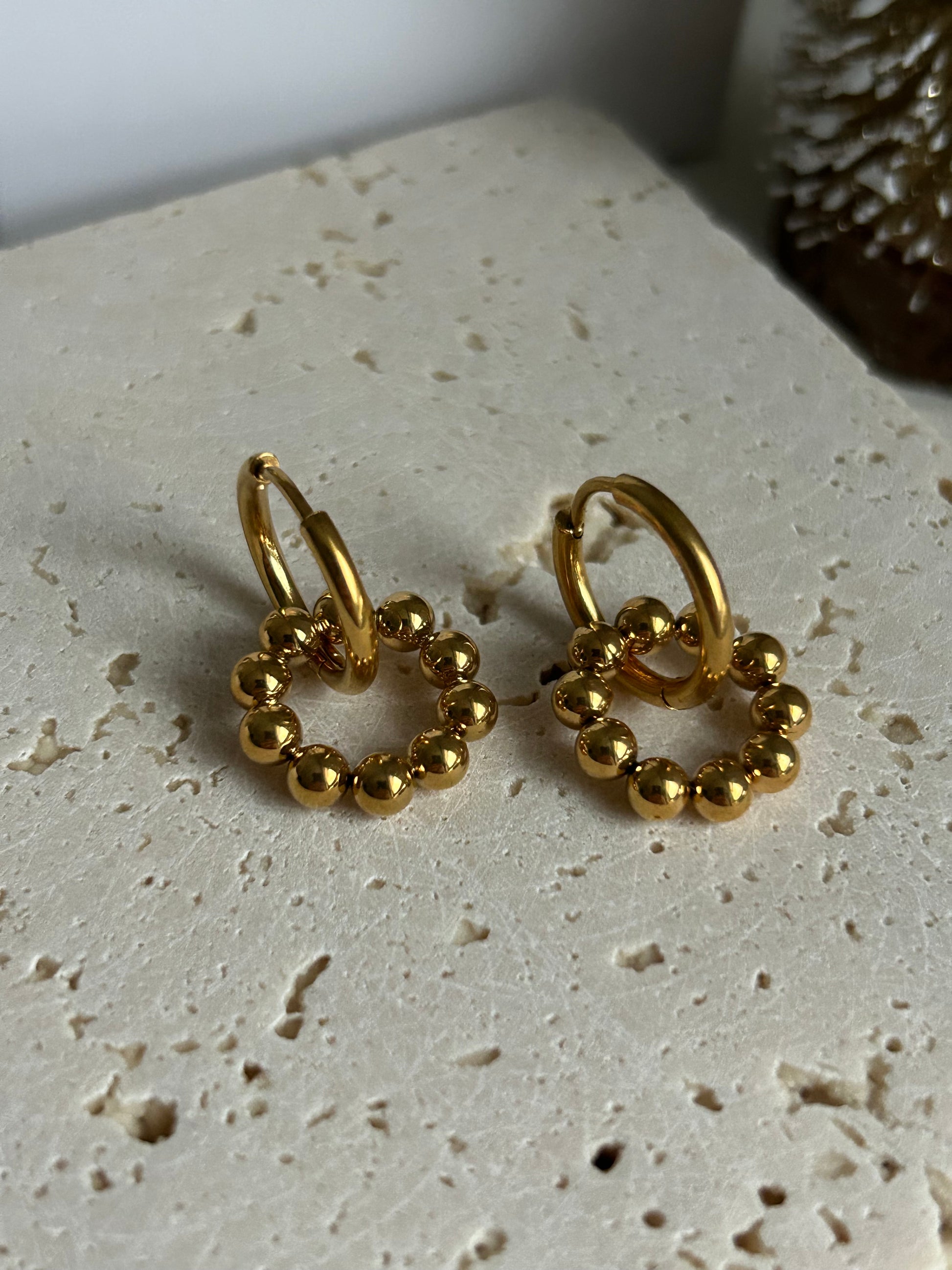 Moderne goldene Creolen mit runden Kugeldetails – schlicht, edel und perfekt für jeden Look.