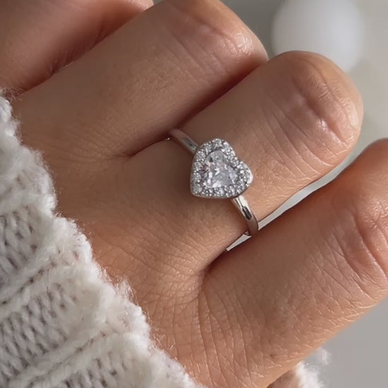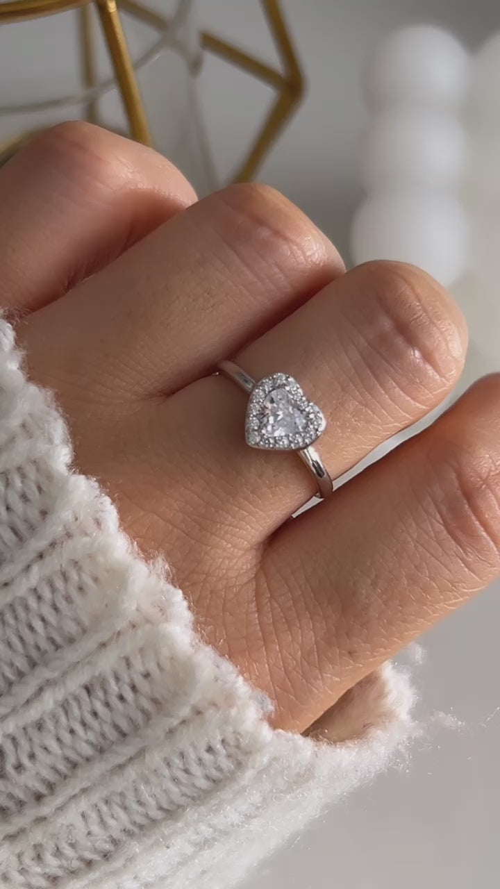 Powder Heart Ring mit Herz aus Zirkonia Steinen.