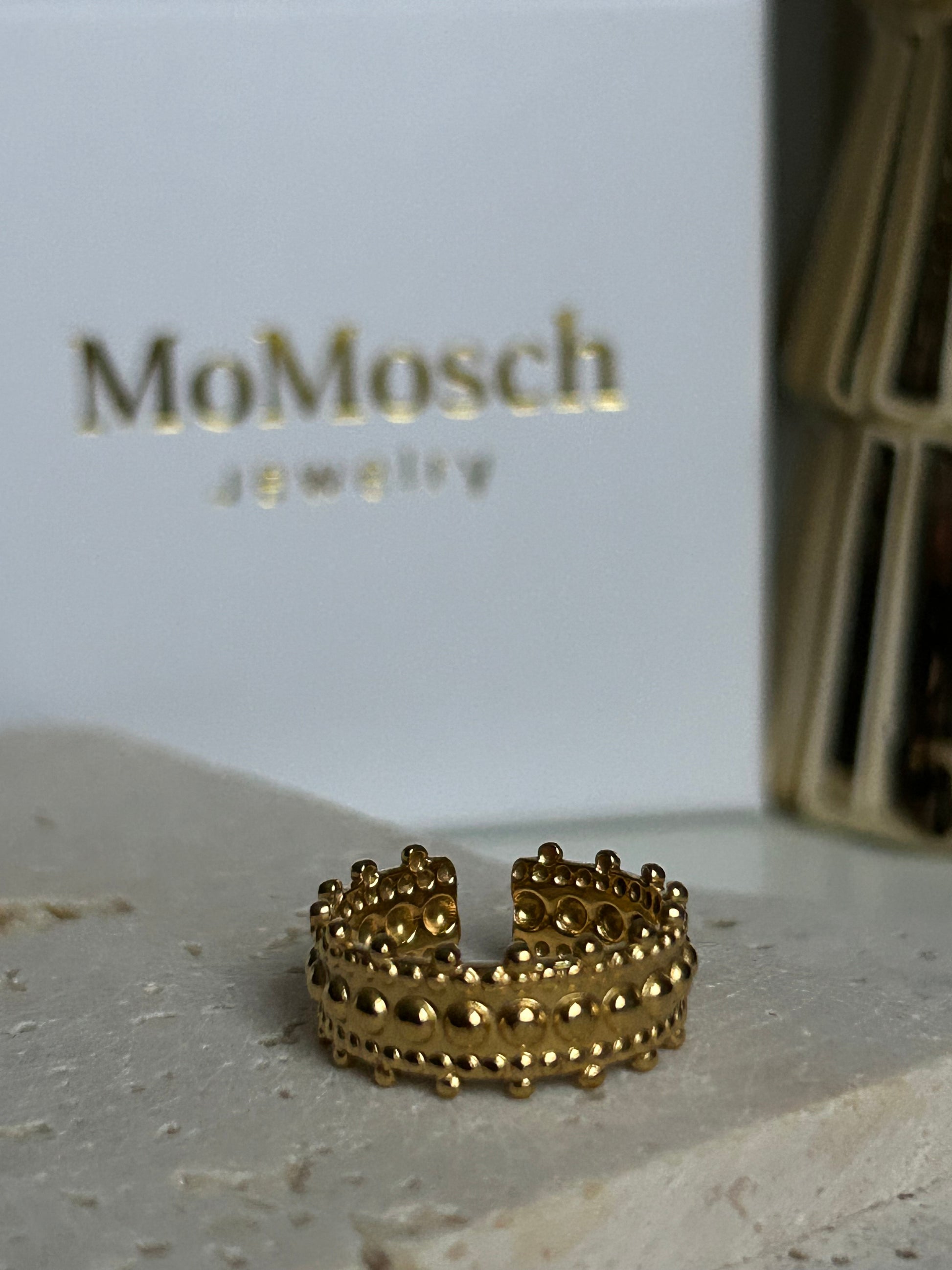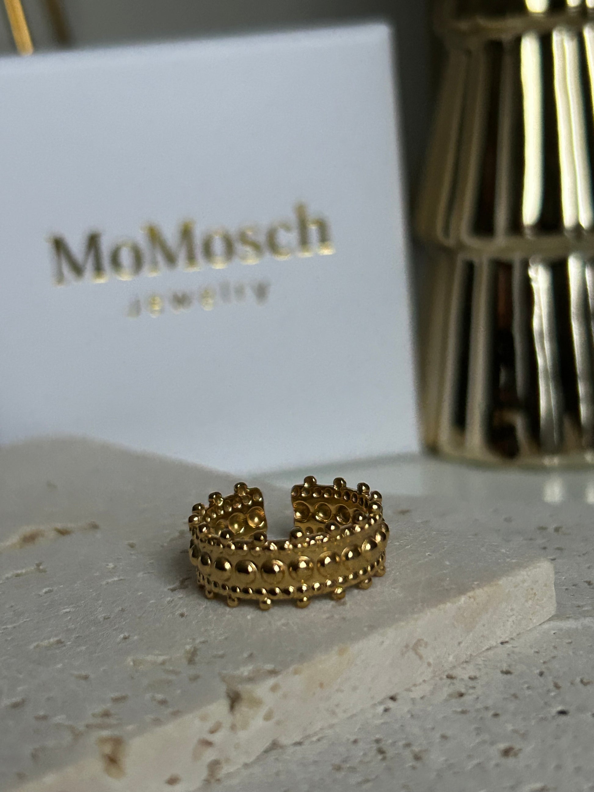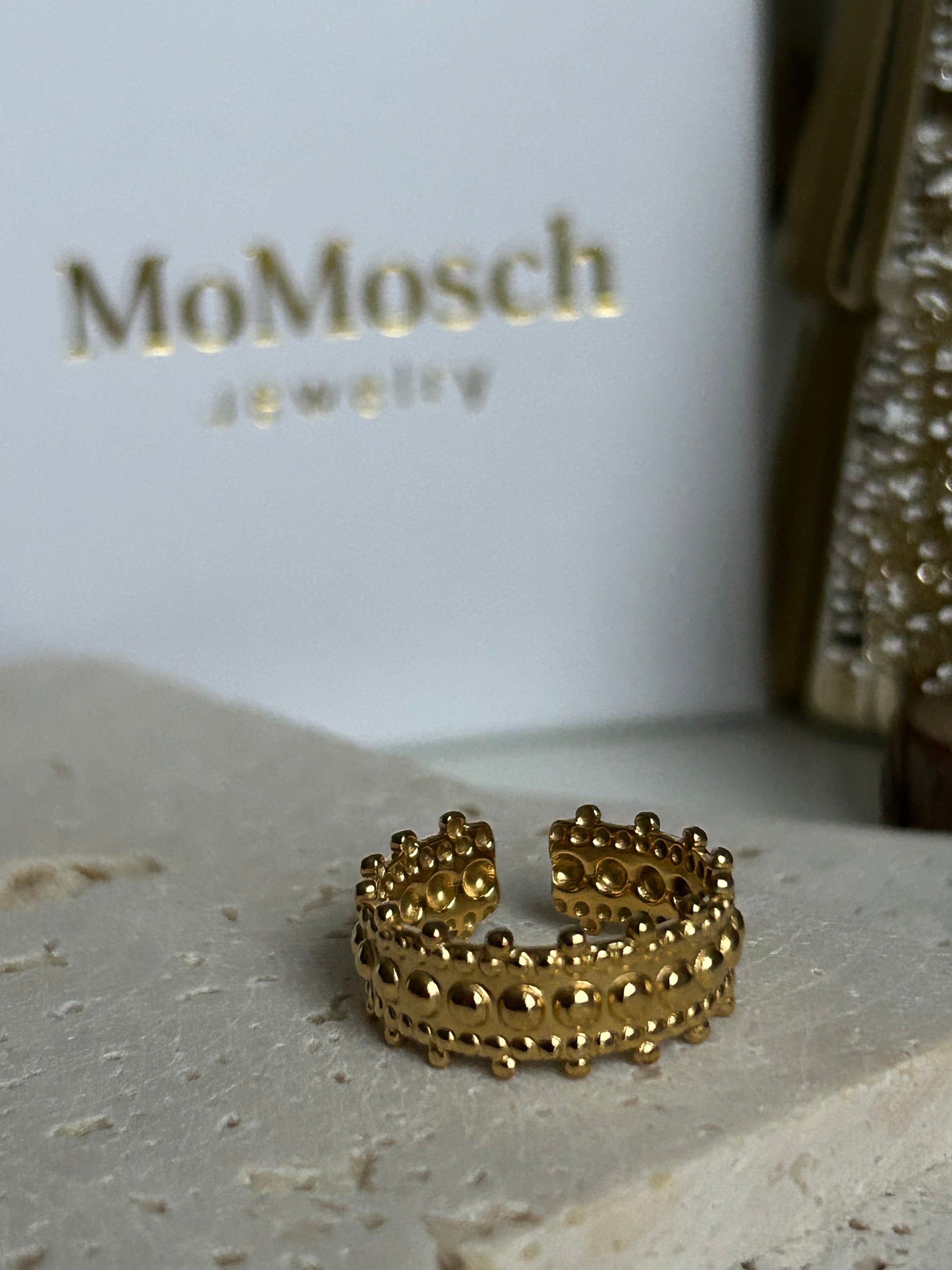 Goldener Edelstahlring mit strukturierter Oberfläche – markant, edel und trendig.